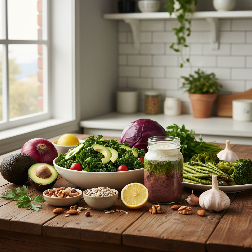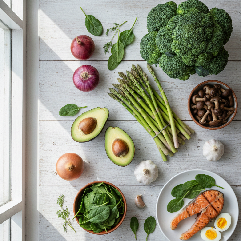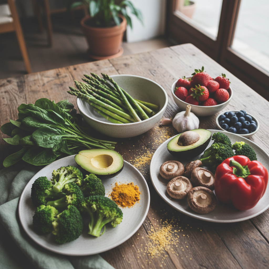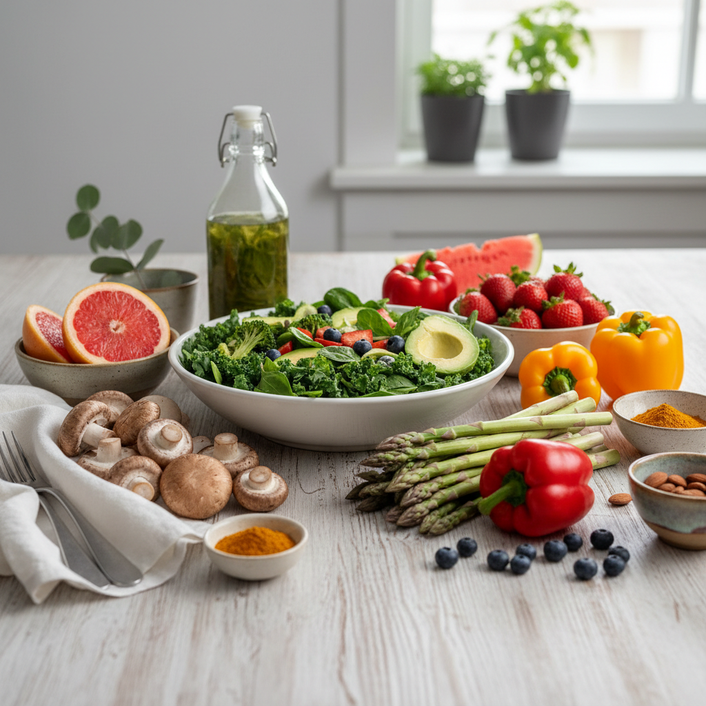 글루타치온은 보충제뿐 아니라 일상 식단을 통해서도 어느 정도 보충할 수 있습니다. 특히 신선한 채소·과일·단백질 식품에 글루타치온 및 전구체가 풍부하게 들어 있어요.
