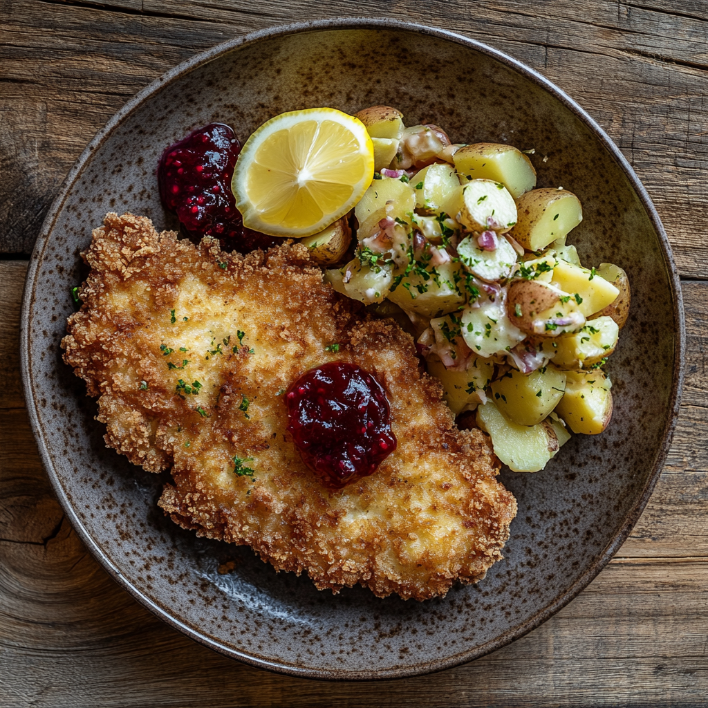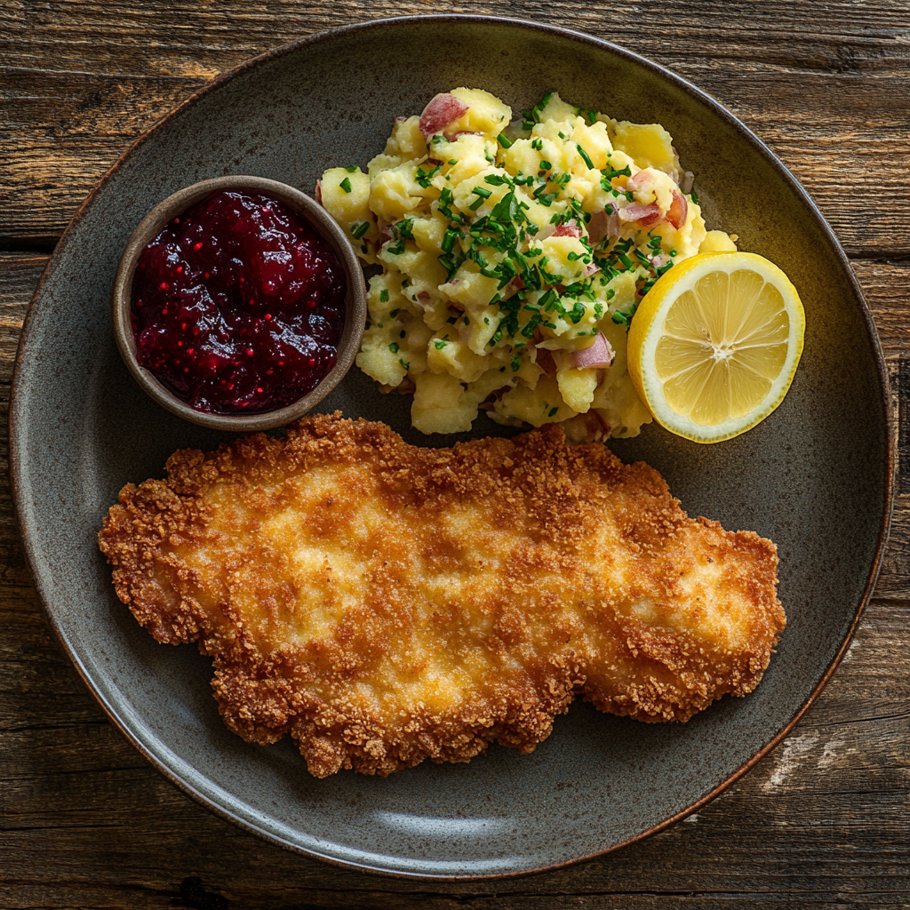 - 잼과의 조화: 오스트리아에서는 링곤베리 잼(Lingonberry Jam)을 곁들여 먹습니다. ""고기에 잼이라니?"" 싶겠지만, 단짠단짠의 정석을 느끼실 수 있습니다.