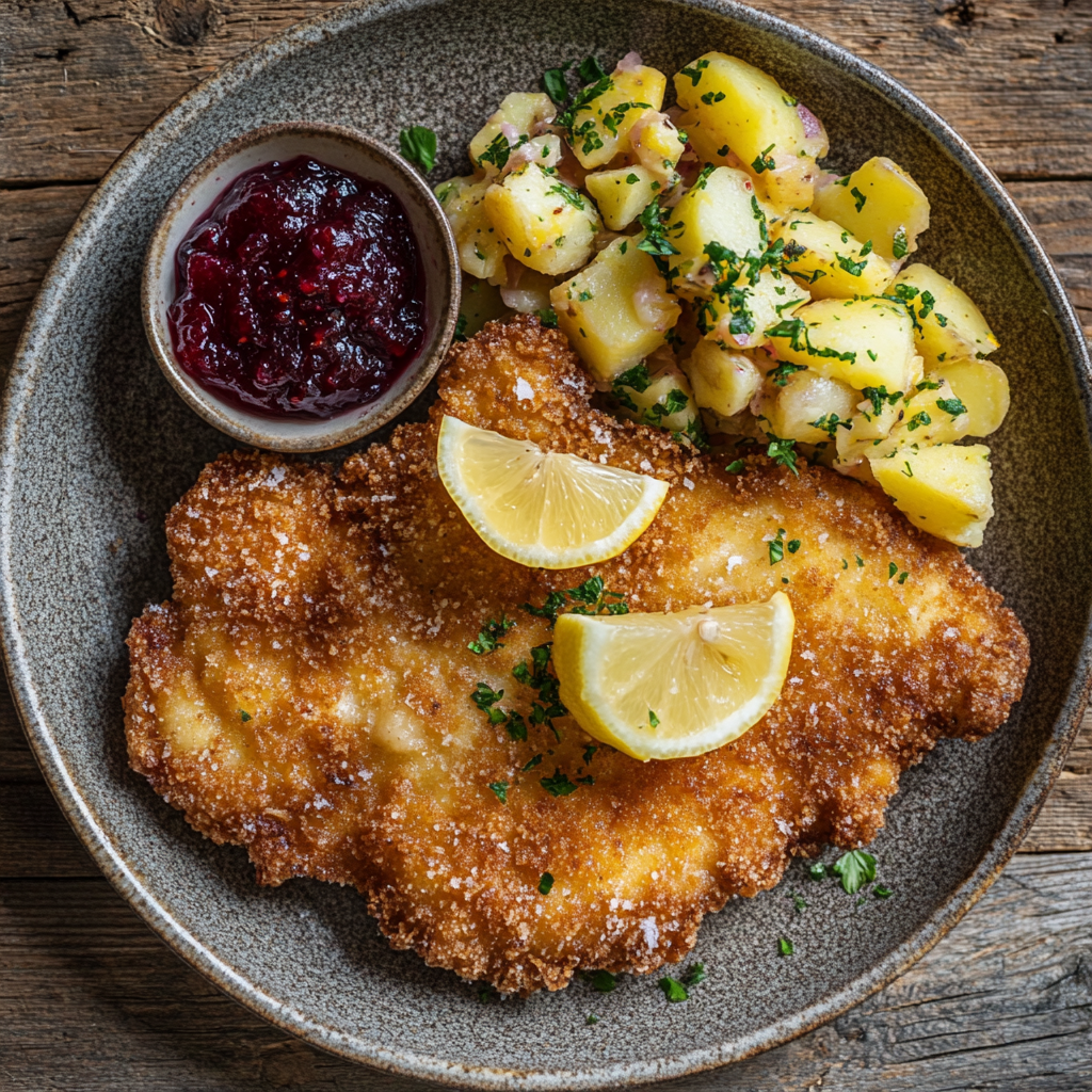 - 레몬즙은 필수: 슈니첼은 기름에 지지기 때문에 자칫 느끼할 수 있습니다. 레몬을 듬뿍 뿌려 산미를 더하면 풍미가 확 살아납니다.