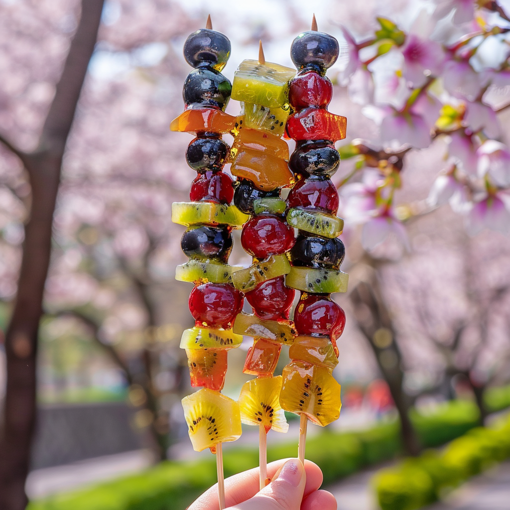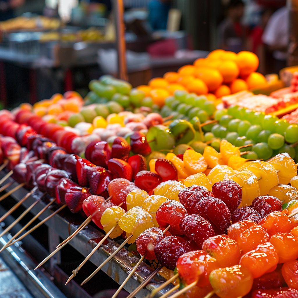 - 과일 탕후루: 딸기, 포도, 블루베리, 키위 등 다양한 과일을 사용.