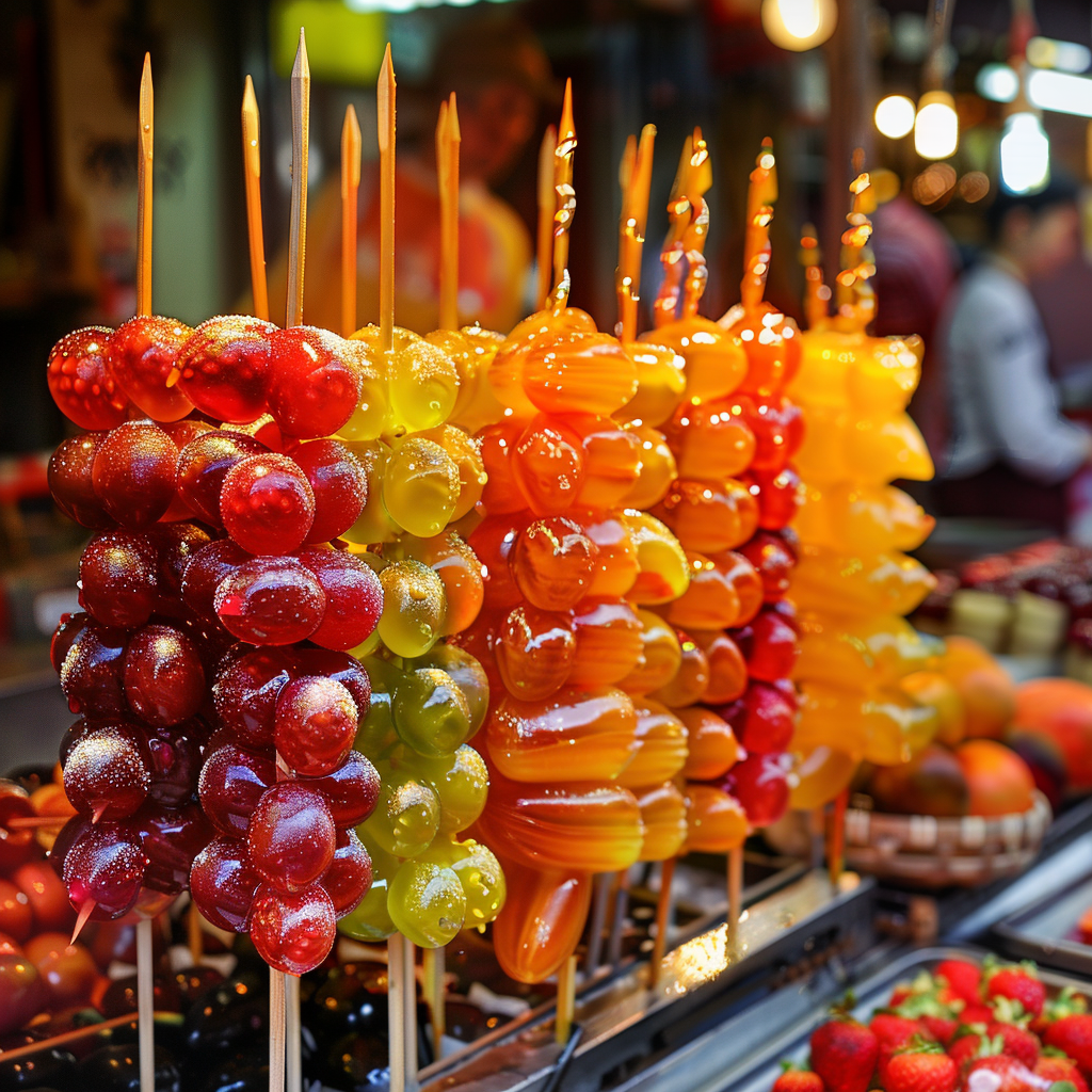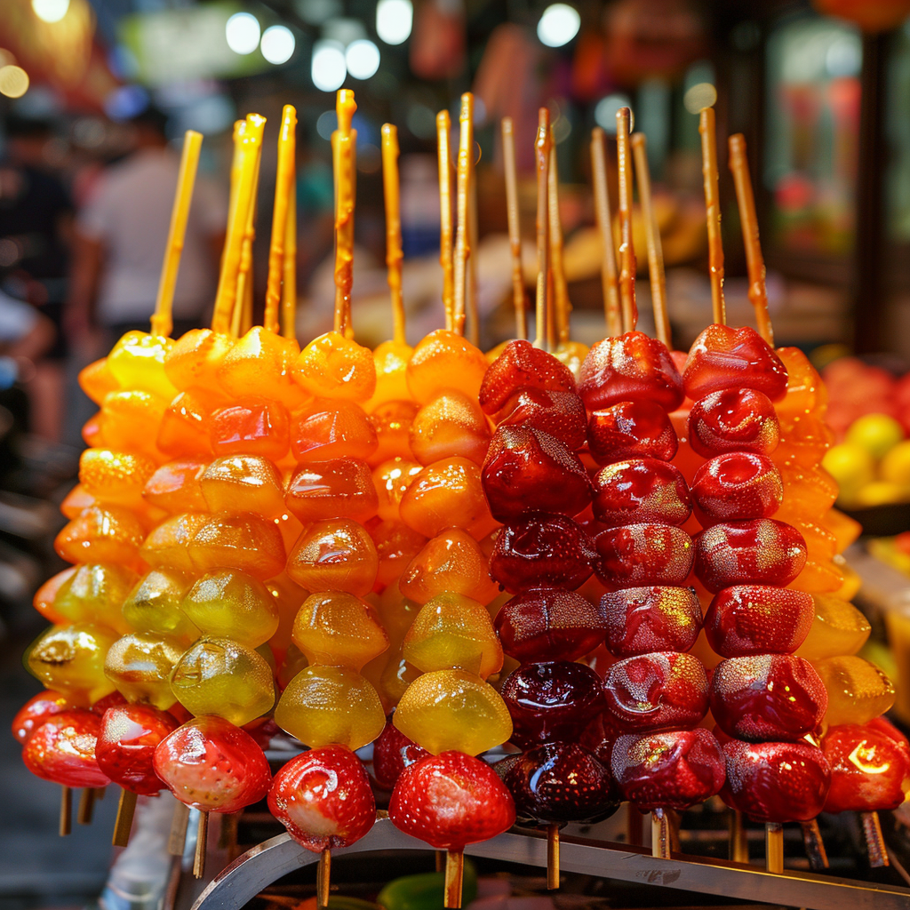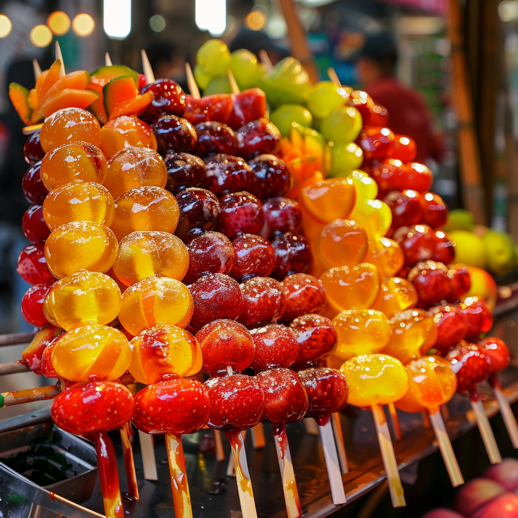 - 기타 변형: 다양한 색상의 설탕 시럽을 사용하거나, 초콜릿과 같은 다른 재료로 코팅한 변형 탕후루.