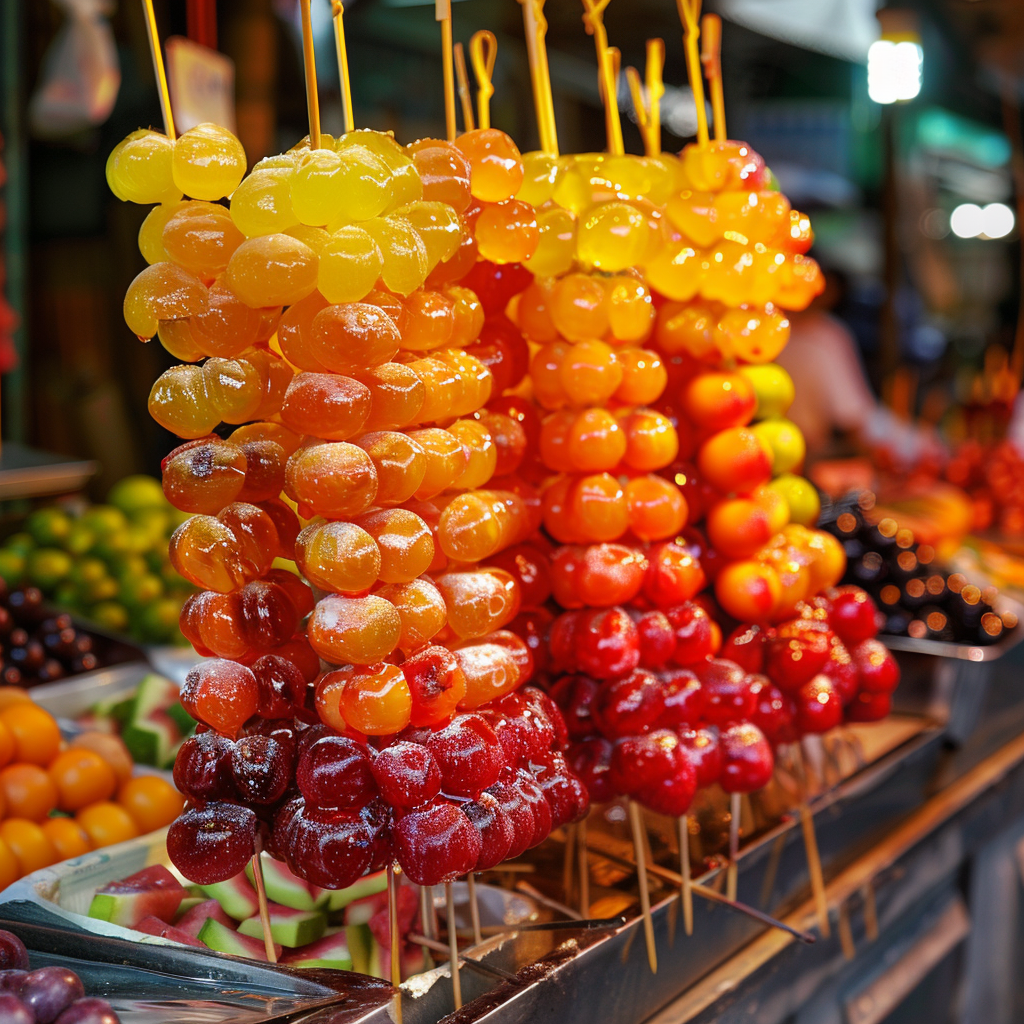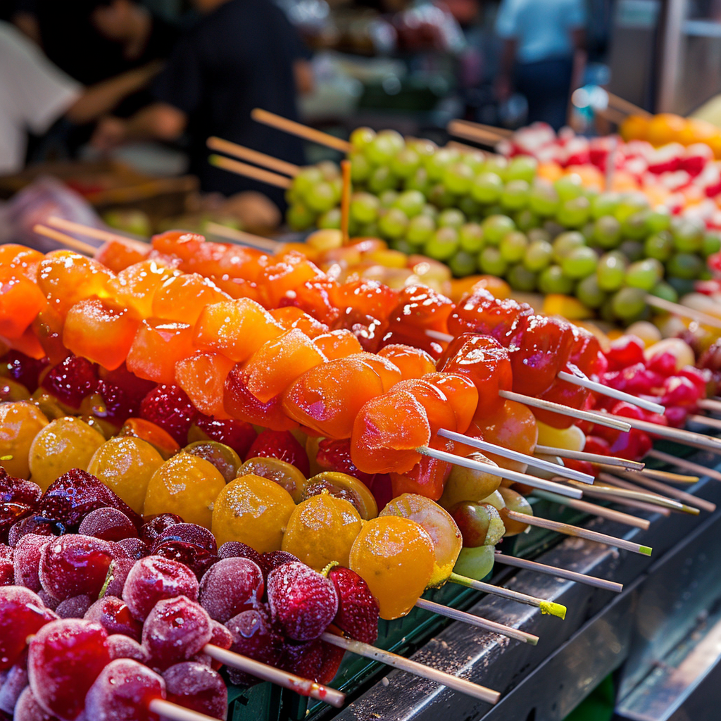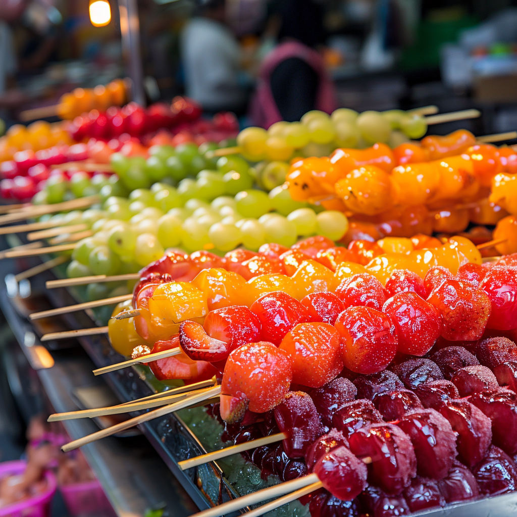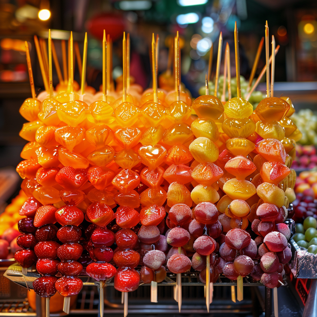 - 기타 변형: 다양한 색상의 설탕 시럽을 사용하거나, 초콜릿과 같은 다른 재료로 코팅한 변형 탕후루.