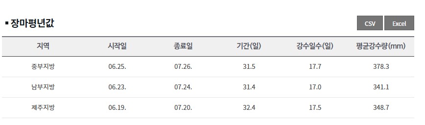 2024년 장마기간기상예보 미리 체크하셔서 안전하고 즐거운 여름 보내시기 바랍니다.